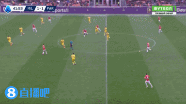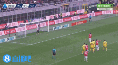伤停补时1分钟。上半场比赛结束,AC米兰1-1帕尔马。